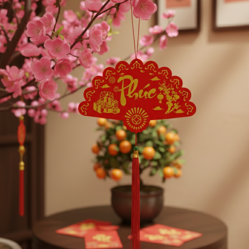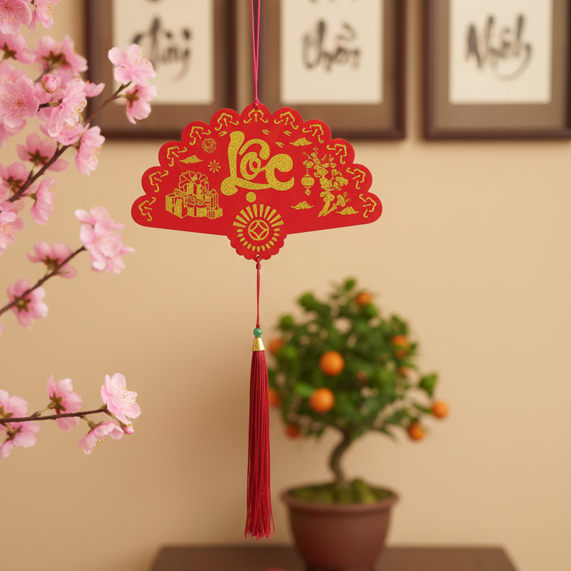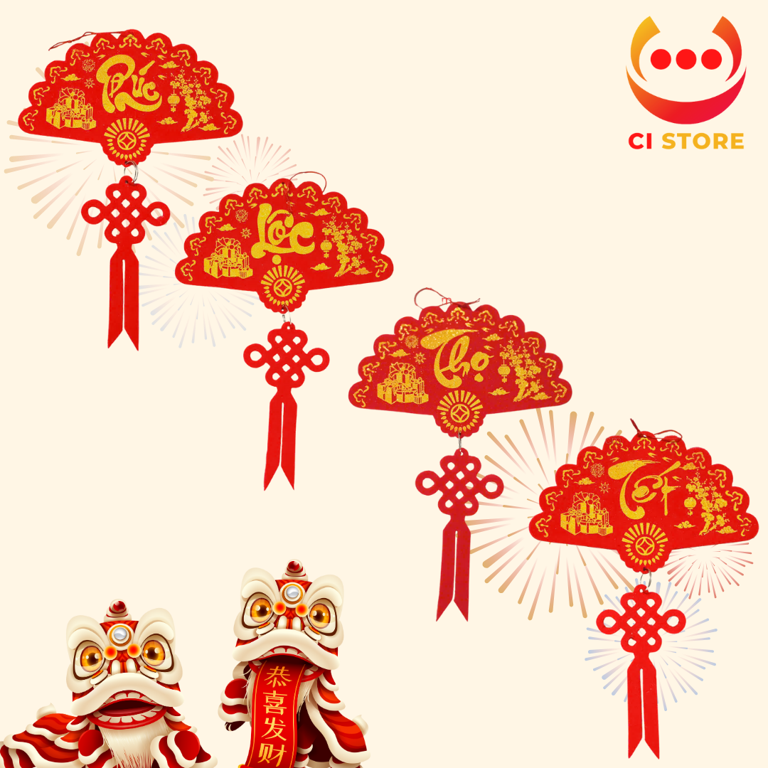 KHÁNH QUẠT TREO PHÚC LỘC THỌ CHỮ THƯ PHÁP NHUNG ĐỎ CAO CẤP TRANG TRÍ TẾT